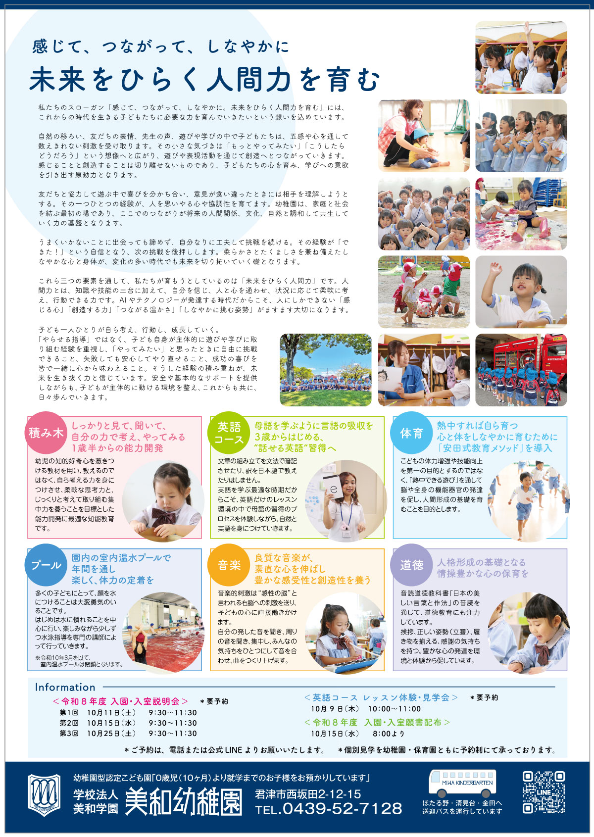 学校法人美和学園 美和幼稚園では、令和8年度入園・入室の園児を募集しております。